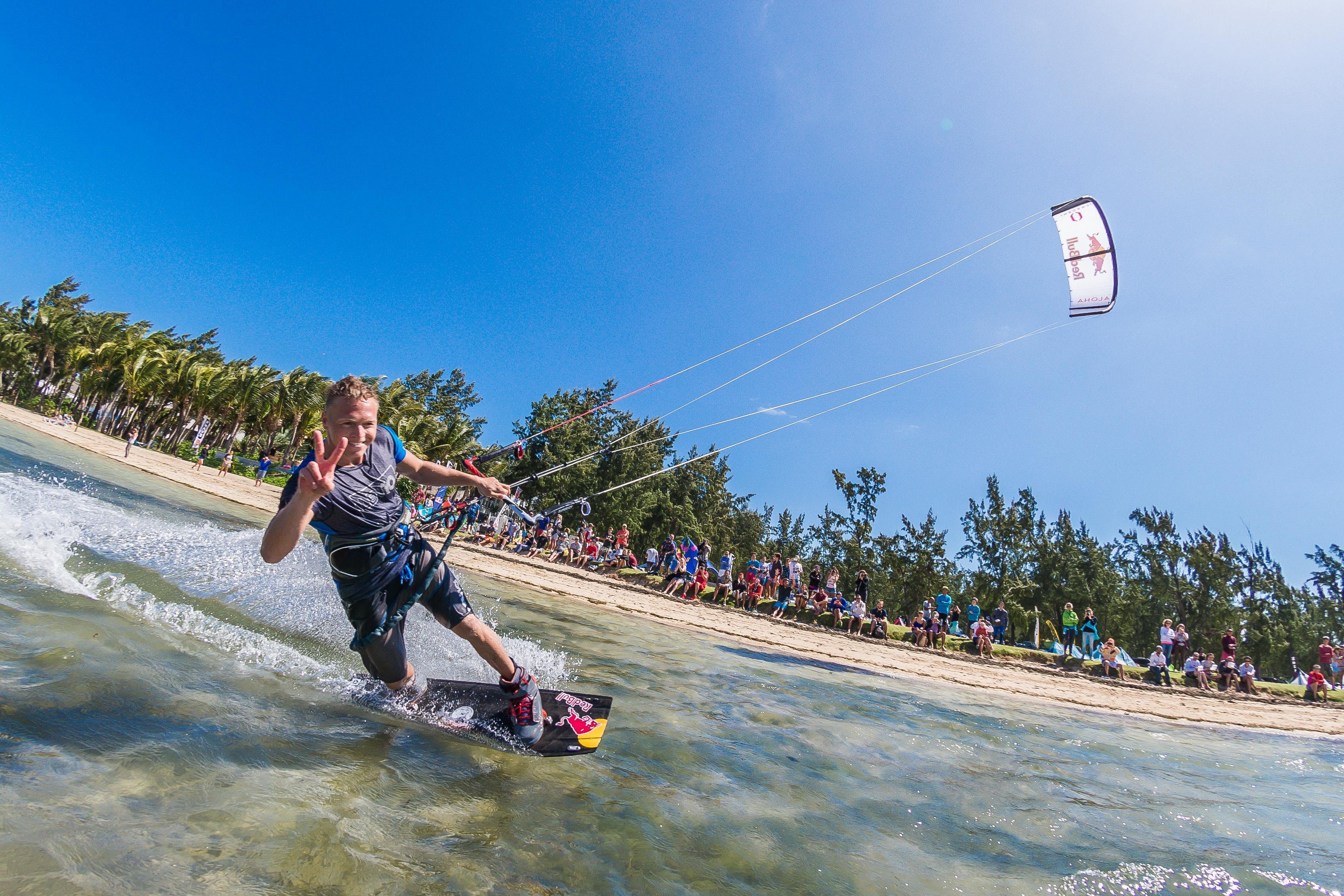 ‘Probeer te relaxen, voel de wind en de kite aan, geen brute kracht, aldus Jones. ‘Gespannen zijn en haasten kunnen je intuïtie en daarmee je vooruitgang vertragen. Geduld hebben is belangrijk. Het leren van kitesurfen is verdeeld in stappen – elke stap is een belangrijk deel van je progressie en moet geoefend worden.’